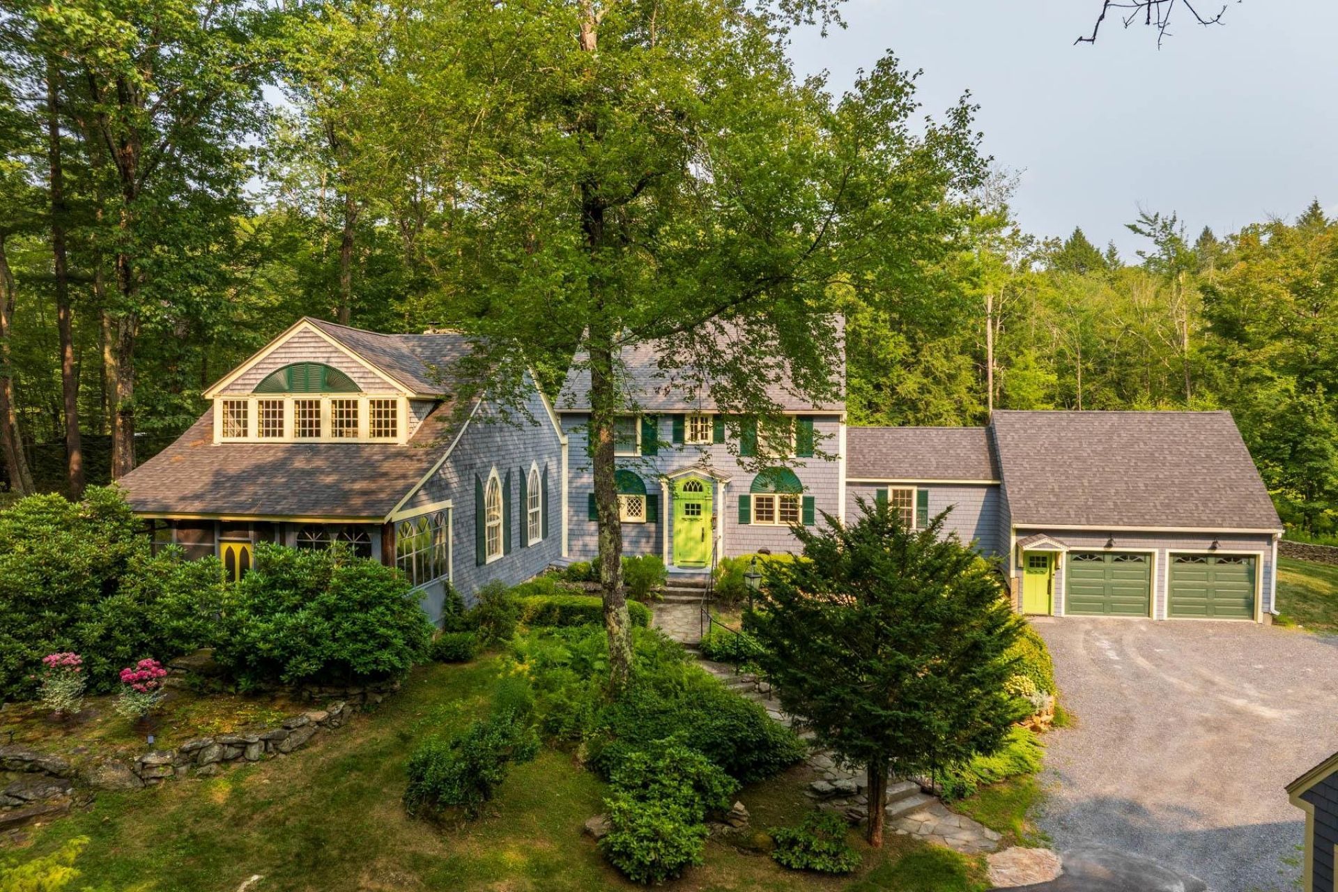 Named Highwood when built by the Van Rensselaer family in the 1920s, this remarkable home features a great room recreated from an 18th-century church. With vaulted ceilings, carved paneling, custom plaster walls, a choir loft, Gothic windows, and a Dutch door opening to a three-season porch, the space feels like a theater transporting you to another era. Italian sconces, 18th-century paintings inset into the paneling, soaring ceilings, and a wood-burning fireplace enhance its grandeur. Between 2016 and 2018, the home was thoughtfully expanded and renovated, blending historic character with modern comfort. Highwood now offers an open-concept kitchen flowing to dining and family rooms, French doors to an office, and a first-floor primary suite with cathedral ceilings, shower, and claw-foot tub. The kitchen connects to a hallway leading to garages, a yoga studio/playroom, and a deck and patio. A garage lift/elevator provides easy access for groceries or a wheelchair. Upstairs are four additional bedrooms and two full baths. Set on over three acres bordering conservation land, the property includes low-maintenance gardens, stone walls, a fenced street side for privacy, and a hand-wrought cast-iron gate?an original housewarming gift from Lady Astor to Mrs. Van Rensselaer. Please see virtual tour. Listing agent related to seller.