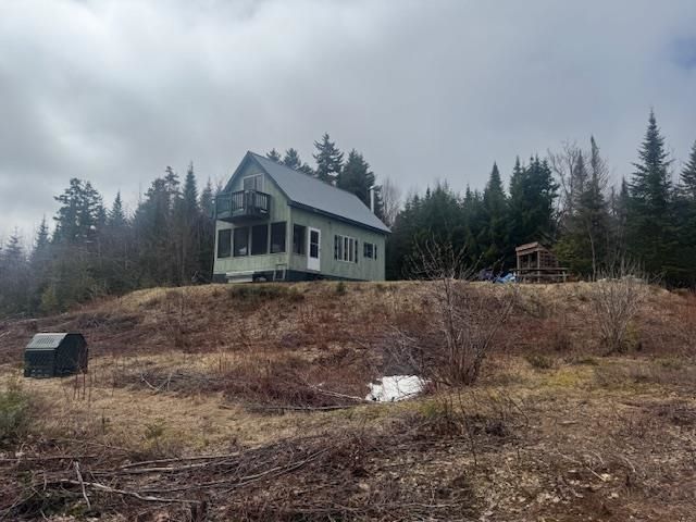 Lovely year-round camp on 33.9 acres in Newark with sweeping easterly mountain views. Camp includes a screened in porch, large living room, dining area and kitchen with gas range and refrigerator. Kitchen with upper and lower cabinets. Second floor has two bedrooms. The east bedroom has a sliding door to a balcony to enjoy the view. There is a half bath between the bedrooms with composting toilet and sink. Next is a detached shed with a water pump that pumps water from the dug well to a large storage tank then into the camp. A shower stall and on demand water heater, plus an inverter and switch for the solar panels on the camp roof with battery storage. Sellers are including a 5500 watt generator. The camp has a metal roof and vertical wood siding. Concrete footings and PT posts with insulated skirting. The yard has a campfire area with picnic table. A wood shed and outhouse are off to the side. Follow the old logging trails, bike all the Kingdom Trails, CC skiing and Burke Mountain Alpine skiing as well. A perfect getaway spot with all the amenities.